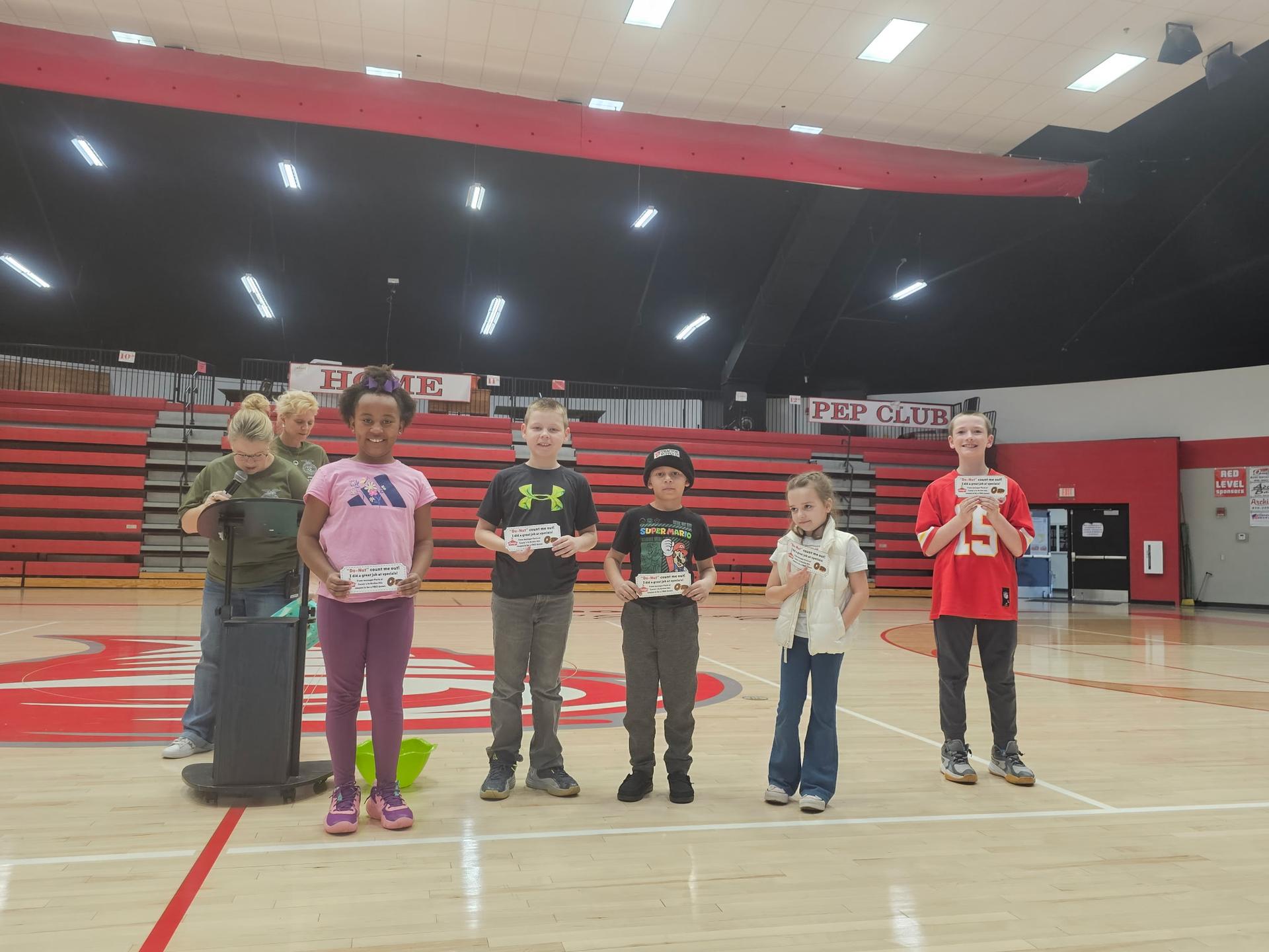 Bottom Left: The Whirlwind Buck winners for February received a gift certificate for a free donut at Archie Casey’s! Students earn Whirlwind Bucks in specials, Title I, and at lunch. All bucks are entered into a drawing at the end of each month, and five winners are selected to receive this special treat.