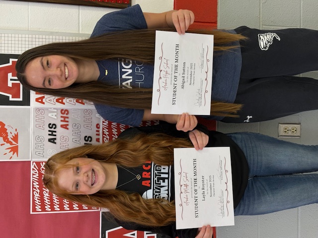Congratulations to Layla Royster and Abigail Sutton for being recognized as our Students of the Month! Both Layla and Abigail consistently demonstrate the character trait of Service, going above and beyond to help others and contribute positively to our school community. We are proud of their leadership, kindness, and willingness to make a difference.