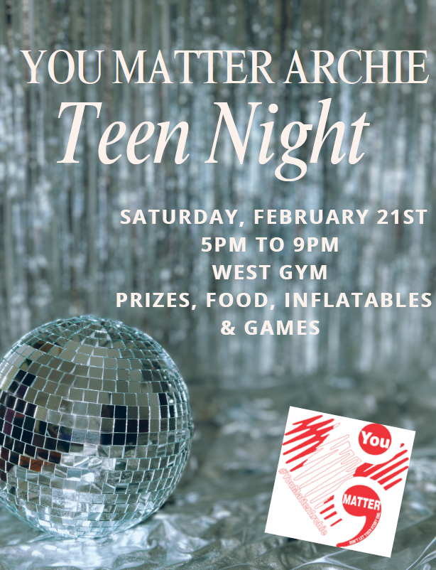- 2/21 You Matter Archie Teen Night (grades 6th-12th)